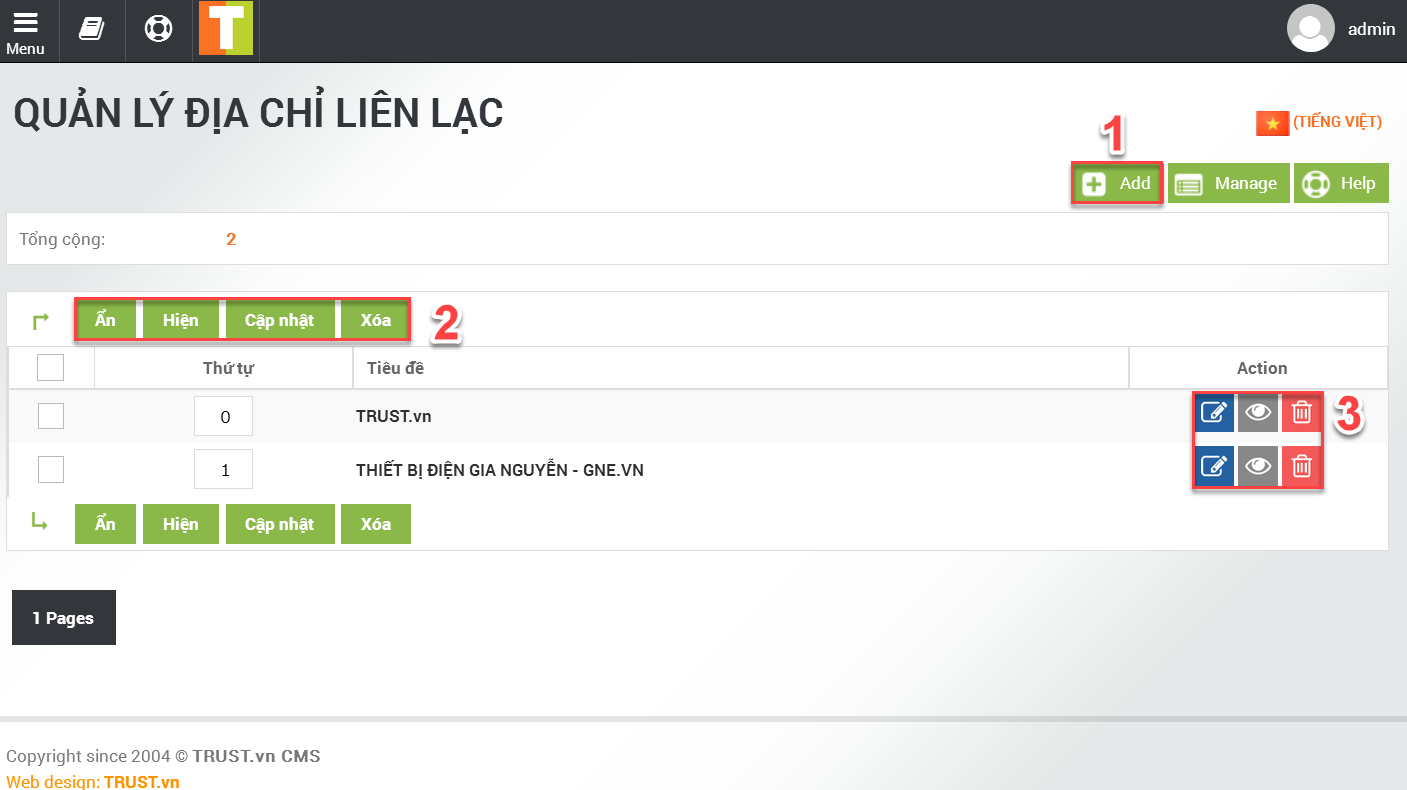 Nơi quản lý địa chỉ liên hệ như: Văn phòng công ty, chi nhánh,…Để vào quản lí địa chỉ liên lạc ta thực hiện như sau