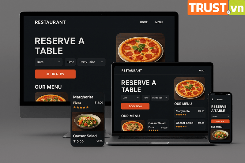 Form 3 bước (số khách → ngày/giờ → xác nhận). Tự động gửi email/Zalo, hạn chế trùng lịch.