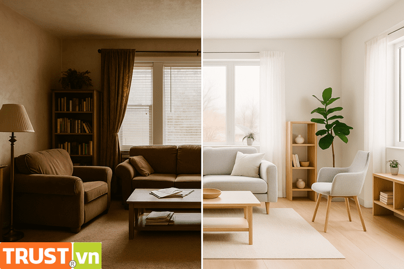 Chốt phong cách chủ đạo: Modern, Minimal, Scandinavian, Japandi… và bộ sưu tập chất liệu (gỗ, đá, kính…).